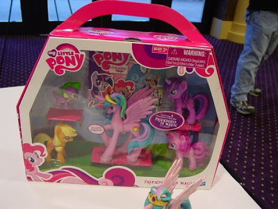 "I asked about Princess Celestia's color change. They said that the 5 pack (the darker pink) is more in the prototype stage still and it will probably be closer to the light, pale, pearly pink we first saw at the toy fair.