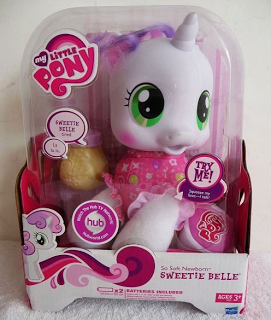 Malancaiwen at the MLP Arena posted images of a G4 Sweetie Belle "So Soft Newborn" toy. This is the first confirmation of Sweetie Belle as a character for the TV series, though it was previously rumored.