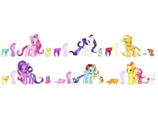 The Ponies with Animal Friends, displayed at the MLP Fair, are estimated to arrive November 2010. BBTS has a set of 6 for $29.99, while Entertainment Earth is asking $32.99 for six.