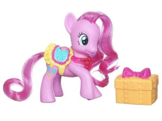 The Big Bad Toy Store has images of Shine Bright Pinkie Pie and Rainbow Dash. These ponies are estimated to arrive in December 2010, and are at $9.99 each at BBTS - pre-order Pinkie Pie here or Rainbow Dash here. Entertainment Earth is offering a set of 3 of each pony plus 2 Rarity with Light-Up Horn ponies for $69.99.