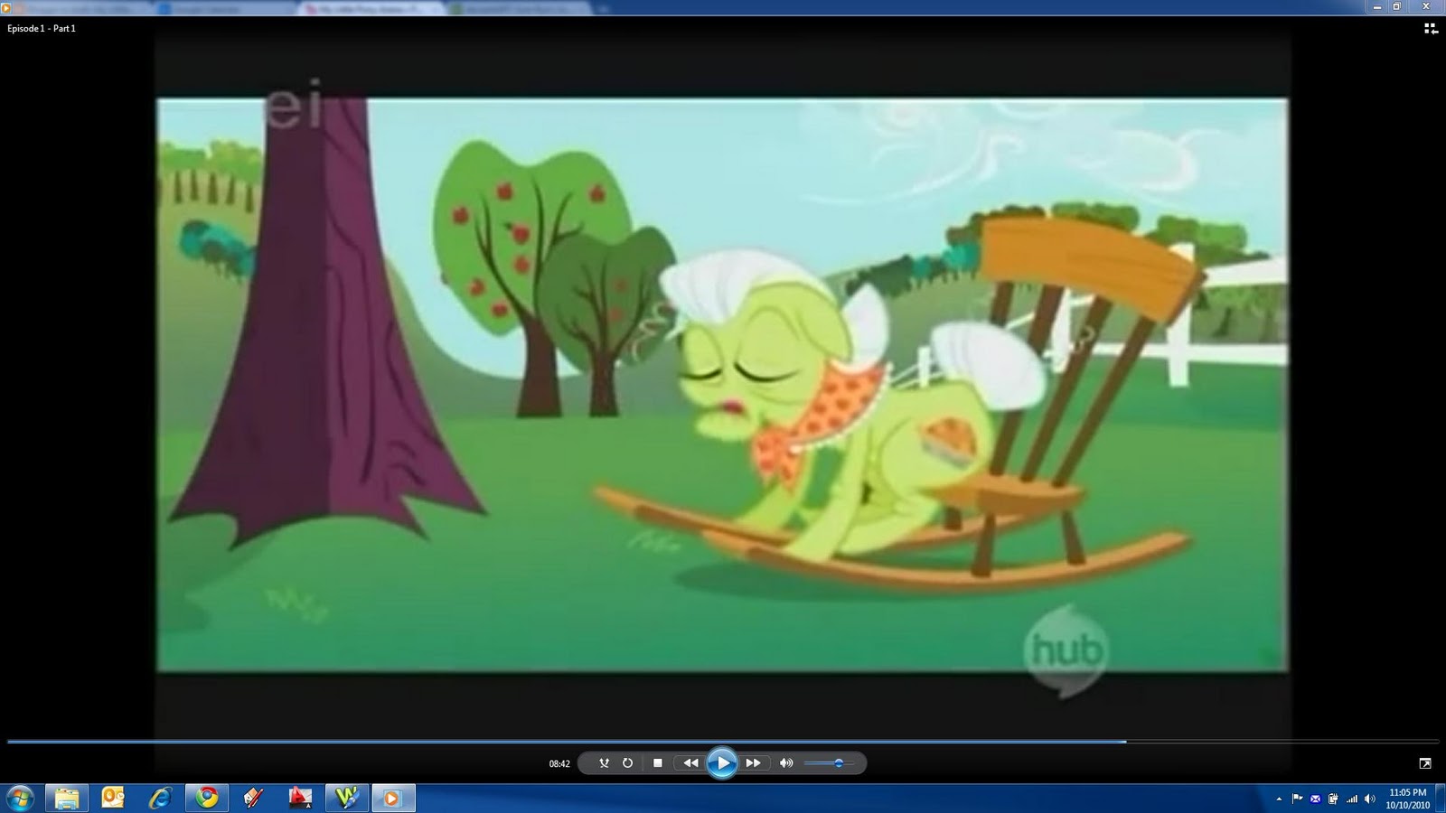 White unicorn (Cathy Weseluck): "Does that pony do anything except study?"