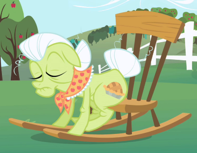 Recently, 'Evolution of a scene' videos have been popping up. These videos offer a behind the scenes look at some animation sequences from the first season of Friendship is Magic. The newest one to have surfaced comes from episode five, and shows the scene where Gilda puts her tail in a vegetable cart to prank Granny Smith. Granny Smith mistakes the tail for a rattlesnake, and suggests that everyone vacate the premises, then proceeds to flee from the cart with what I can only assume for Granny Smith, is great haste.