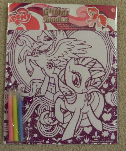 A Glitter Doodles set featuring Rarity and Princess Celestia can be found at Dollar Tree.