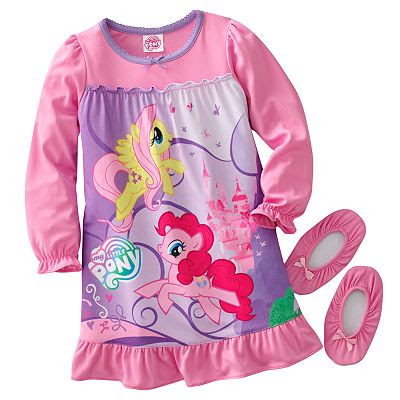 Cute toddler nightgown and slipper set featuring Fluttershy and Pinkie Pie! Comes in sizes 2T, 3T and 4T. It is currently on sale in Kohl's online store for $13.50 (originally $30.00).
