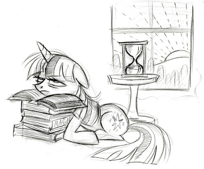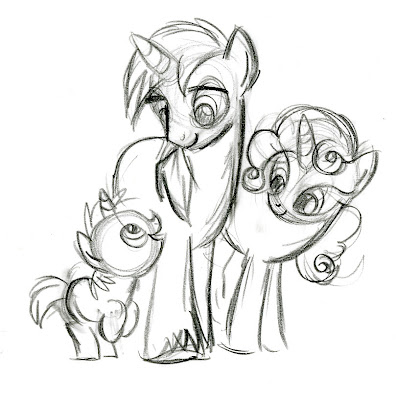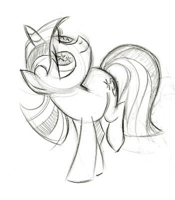 In this sketch, Twilight's cutie mark is a variation of G1 pony Moondancer's. Lauren says Moondancer was another pony she like as a kid.