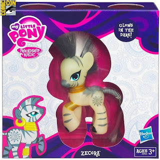 This is late news now, but the glow-in-the-dark Zecora the zebra figure we saw at this year's Toy Fair accompanies Derpy Hooves as a Comic-Con exclusive pony, available at the Toys R Us booth (2343).