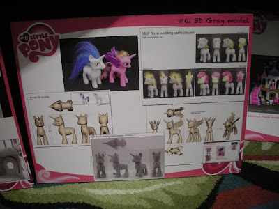 Not news, but very cool to see what goes into making a My Little Pony! Hasbro brought these prototype boards to the 2012 My Little Pony Fair detailing the planning behind the wedding castle. Thank you Rhini on MLP Arena for the pictures!