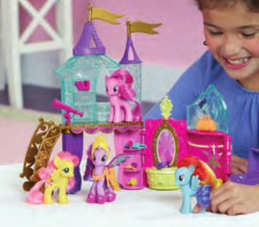 This ad was found on page 65 of the online magazine. It looks like a new castle playset will be seeing a release, along with a winged Twilight Sparkle figure. No word on the official name of the playset. The picture also features Fluttershy, Rainbow Dash, and Pinkie Pie, but they may not be included with the set.