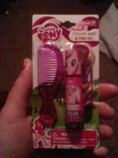 Here's a unique little item! This Princess Cadance-themed lip gloss set comes with a comb to brush the hair attached at the cap. $1.50 each at Dollar General.