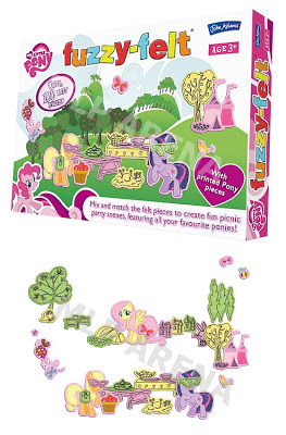 Here we have a cute MLP Fuzzy-Felt kit with Applejack, Twilight Sparkle, and Fluttershy. You can read more about Fuzzy-Felt here.