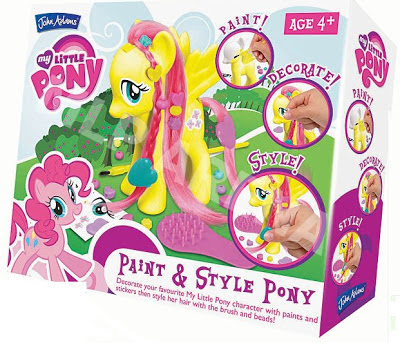 First up is 'Paint & Style Pony'. It appears to feature Fluttershy, but other ponies may be released in the future. The pony is made from clay and is completely blank. You then paint the pony, decorate with hair extensions and stickers, and finally style!