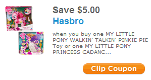 $5.00 off Walkin' Talkin' Pinkie Pie or electronic Princess Cadance.
